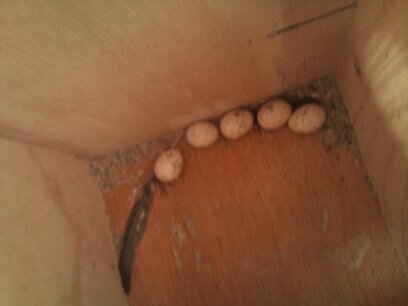 אלה הביצים של הקוקטיילים את הגוזל לא צילמתי כי לא היתה לי את המצלמה היום כשהלכתי לבקר אותם.