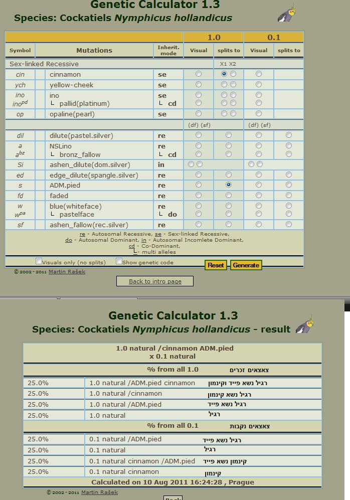 אם לדוגמא יש לי קוקטייל אפור נשא קינמון פייד, ונקבה אפורה הסימון והתוצאות יהיו ככה: