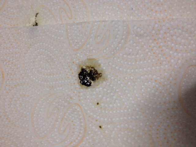 דרך אגב, עכשיו אני נותן לו אוכל. ראיתי שהוא מאוד אדיש ועייף אז נתתי לו לאכול בחוץ שוב. הוא לשלש והלשלשת אמנם הייתה בכמות גדולה (התמונה הבאה זה מלשלוש אחד) אבל הצבע נראה נורמלי.