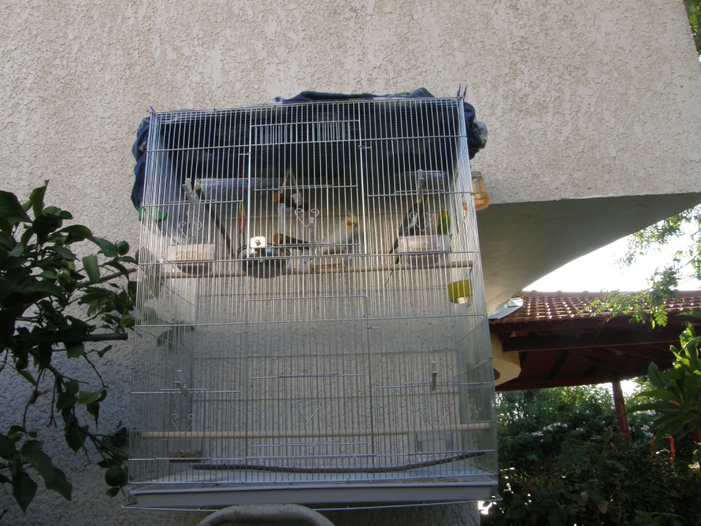 מצורפת תמונה של הכלוב. כרגע כיסיתי מלמעלה עם סדין עד שאבא שלי יביא לי פלטה לשים.
