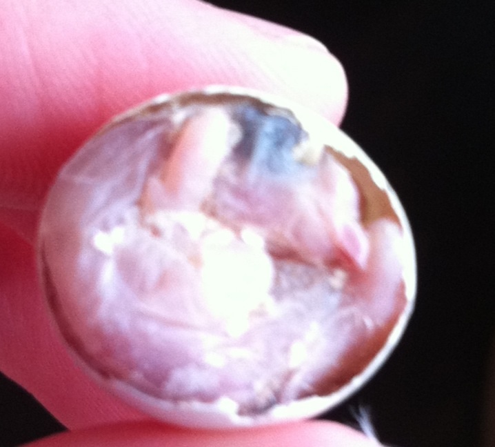 פתחתי את תא ההטלה וראיתי ביצה פתוחה למעלה ובטוחה גוזל מקופל מת..אז איך הוא בקעעם הוא מת? למה הוא מת? אחד הרגעים העצובים בחיים שלי
