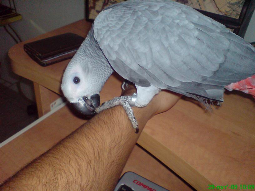 אגב אפשר לראות את צבע העיניים לעומת התוכי הקודם ולהבחין בהבדל.