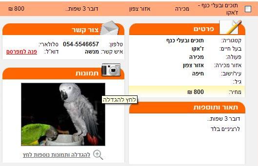 תמייני לפי סוג תוכי(גאקו) ותגיעי למודעה.