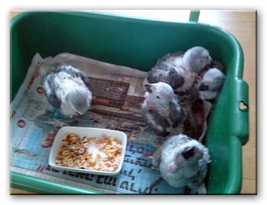 גוזלים מנוצים לגמרי בשלבי גמילה סופיים אוכלים 2 ארוחות.