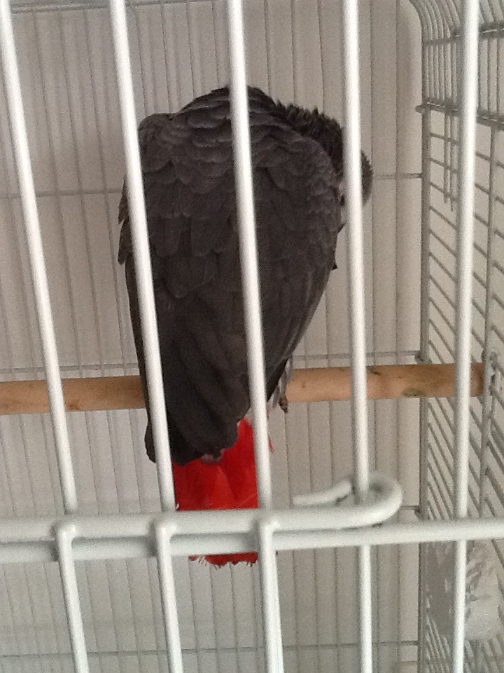 שני דברים קצת מטרידים אותי - הראשון הוא שהיא ישנה די הרבה. כשהיא בתוך הכלוב היא מסובבת את הגב לחדר (פנים לקיר) ומנמנמת אי בוהה בקיר. היא מקפלת את הרגל כשהיא ישנה, אז אני מניחה שהיא לא מרגישה מאויימת, אבל נראה לי שהיא ישנה יותר מדי.