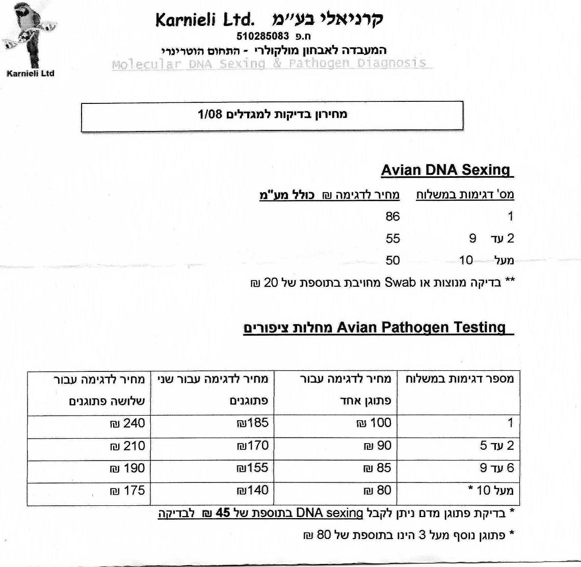 יש פה מגדלים השולחים בדיקות לבד לקירנאלי? מהם העלויות? 250 ש"ח לקלמידיה ומין ? ועוד תוספת של כמה עשרות שקלים למחלת המקור ?