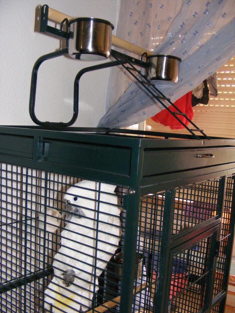 ג. היתי ממליץ לך להשתמש בדיזה של מים יחסוך לך בעיות של לכלוך בכלוב {וזה לא אומר שלא יקבל מקלחות ואור יום לפחות שלוש פעמים בשבוע }