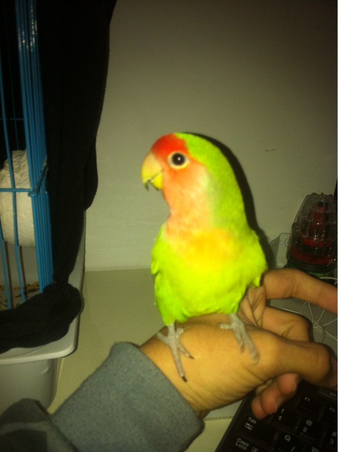 יש לי ציפור אהבה שהוא היה פעם פראי וקניתי אותו בחנות גזרו לו את הכנפיים והפכתי אותו להאכלת יד.