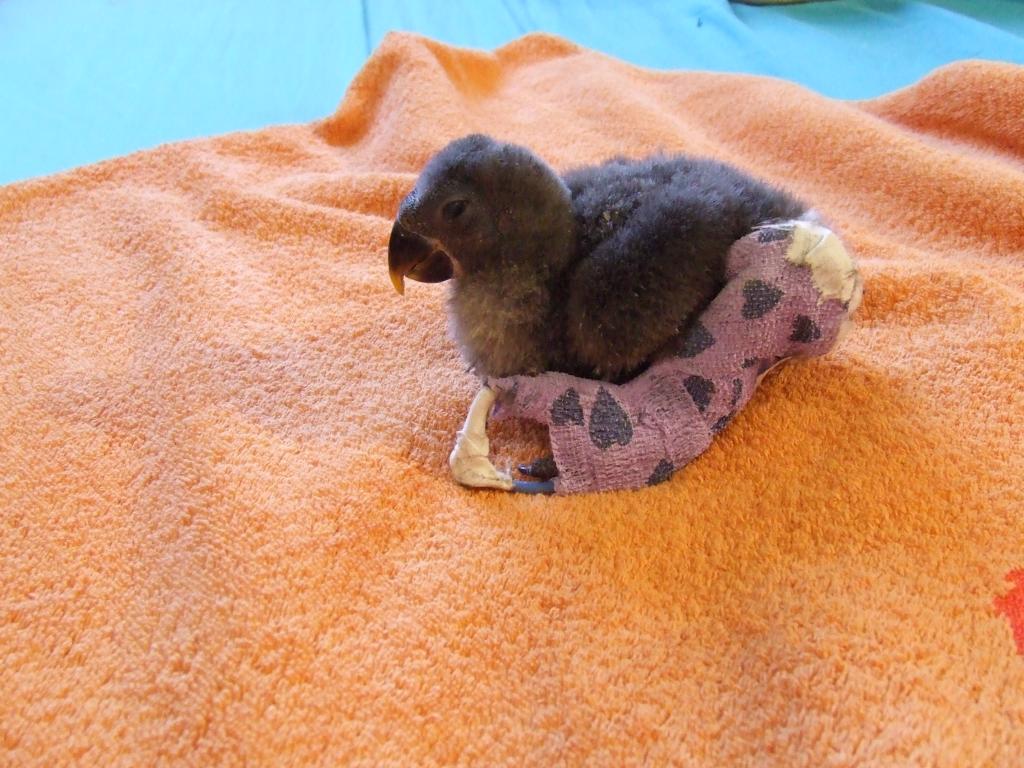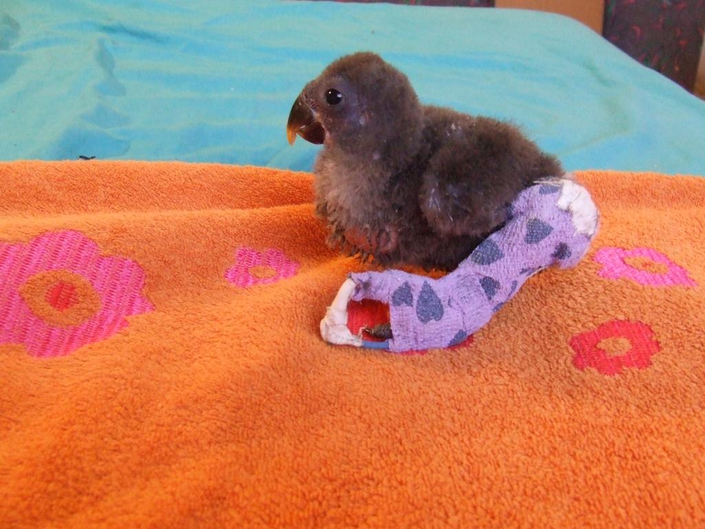 הידיד לקח את התוכי לוטרינר והתברר שהתוכי שבר את ירכו וזקוק לטיפול יומיומי שלו,