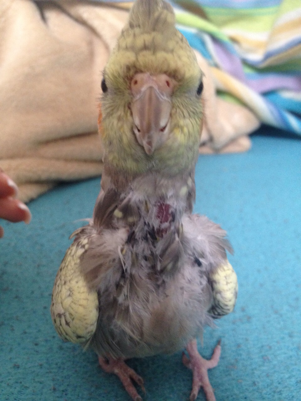 אפשר להבין מהתמונה שהתוכי מורט, דבר שמצריך טיפול כמובן.