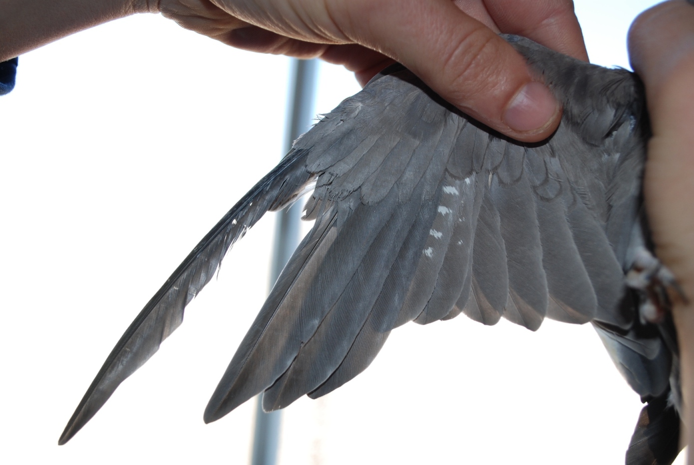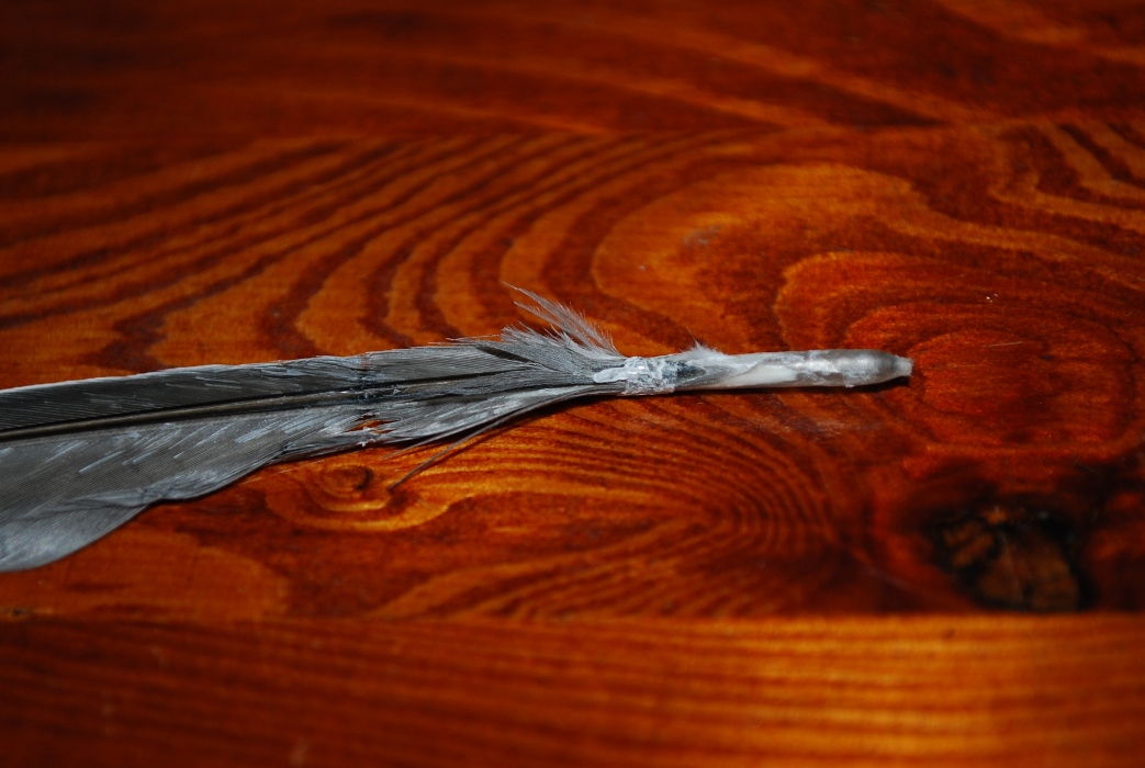 אבל צצה בעיה חדשה: הזכר הצעיר (עוד אין לו שנה) לא מצליח לגדל נוצות טובות! הם נראות בלי הרבה פיגמנט ובאיזורים פנימיים יותר ניראה יבש. חוץ מזה, הם נופלות עוד לפני שהם מגיעות לגודל סופי תוך כדי תעופה לפעמים עם דם ולפעמים בלי. לא מזמן נפלה לו נוצת כנפיים בלי הקצה שלה ויצא לו הרבה דם.