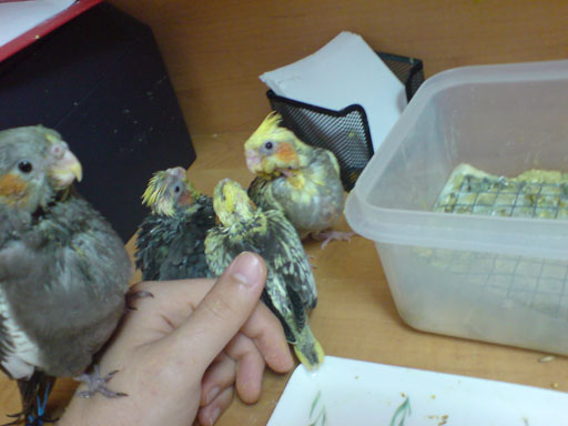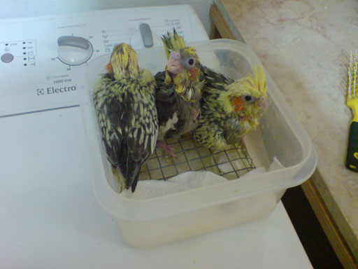 היום הצטרפו למשפחת הקוקוטיילים שני גוזלים חדשים. הם לא בדיוק רגילים, השניים הם אלבינו לבן, הולכים להיראות כמו גוש שלג, אחד מהם נשאר אצלי (כנראה למכירה) והשני יחזור חזרה הביתה.