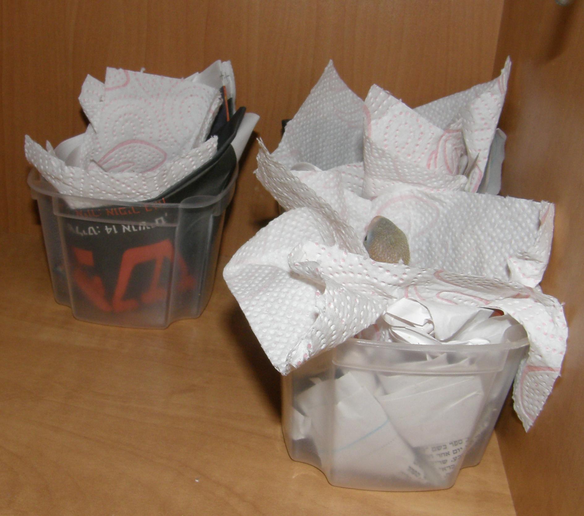 תמונה את הגוזלים הוצאתי מהתא שמתי אותם בקופסאות מרופדות בעיתון ומעל נייר מגבת.