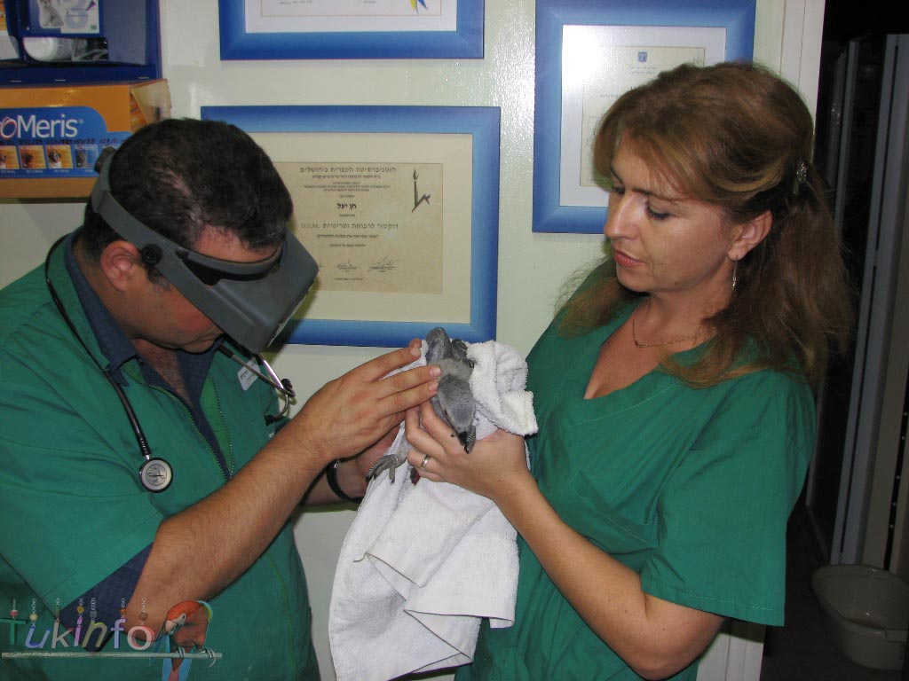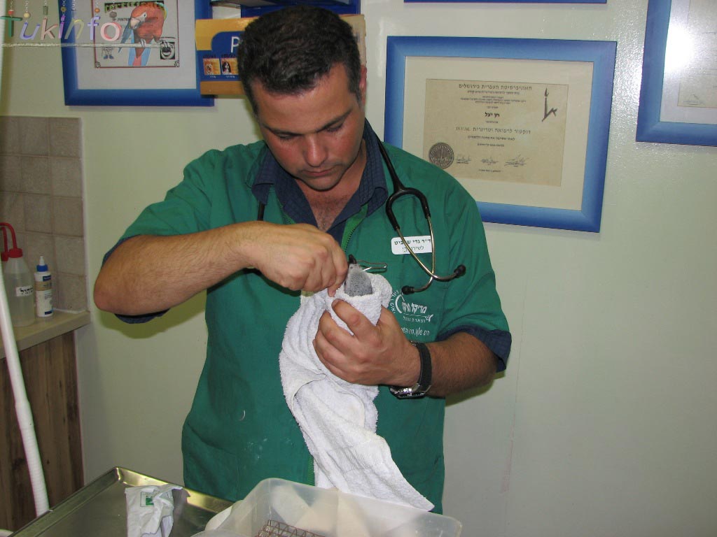 אני מצרף לכם מספר תמונות של הגוזל וגוצ'י הכלב במהלך הבדיקה והטיפול.