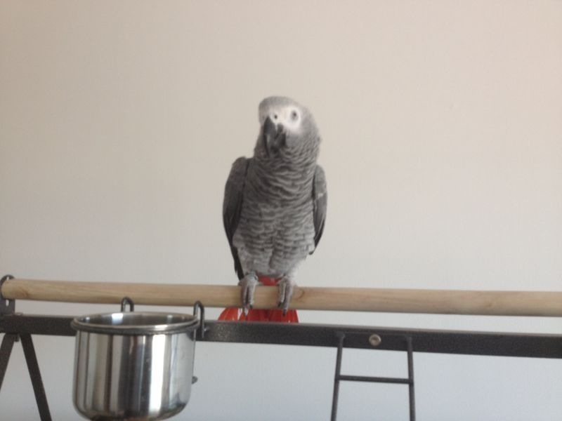 תוכי זאקו ממין נקבה התוכי בן שנה ואחד עשר חודשים.