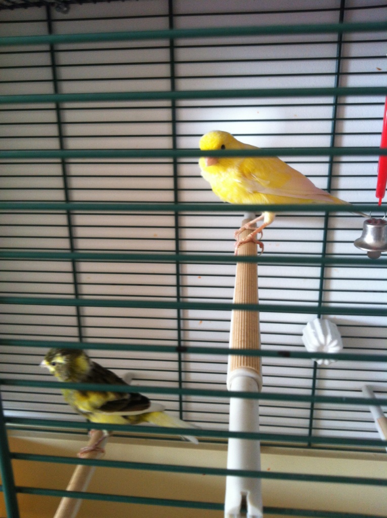 (עכשיו שהכנריות מופרדות הזכר עומד במקום רם בכלוב ושר הרבה יש להם כלוב של מטר לכל 1 )