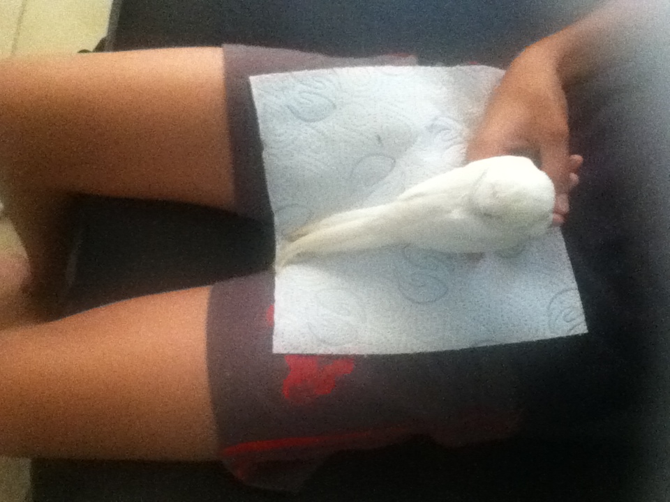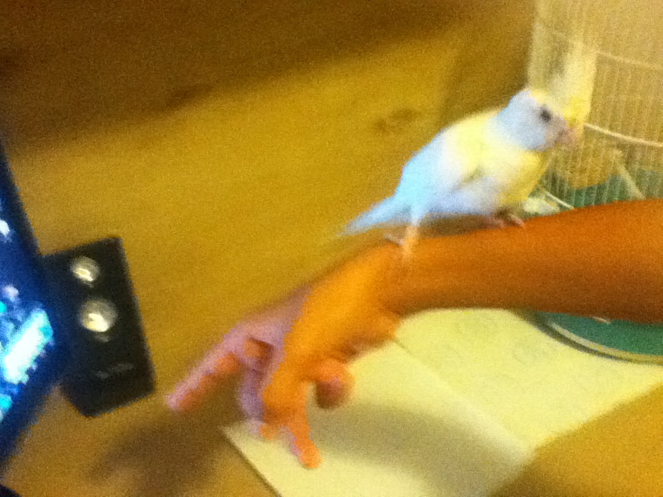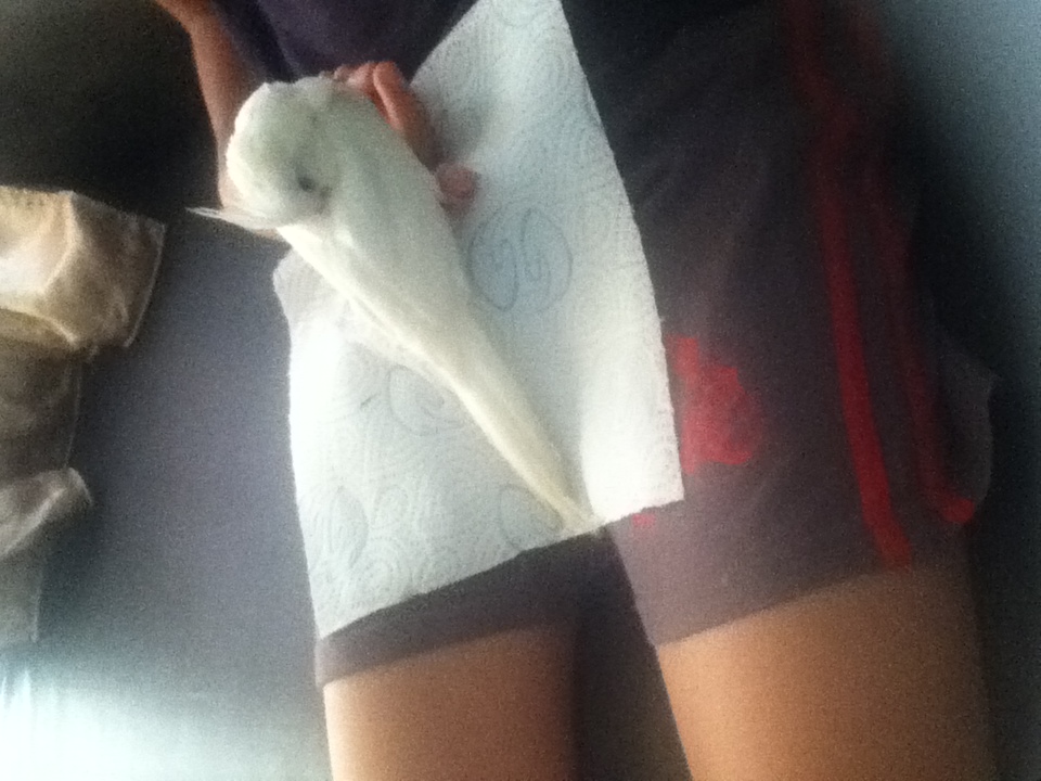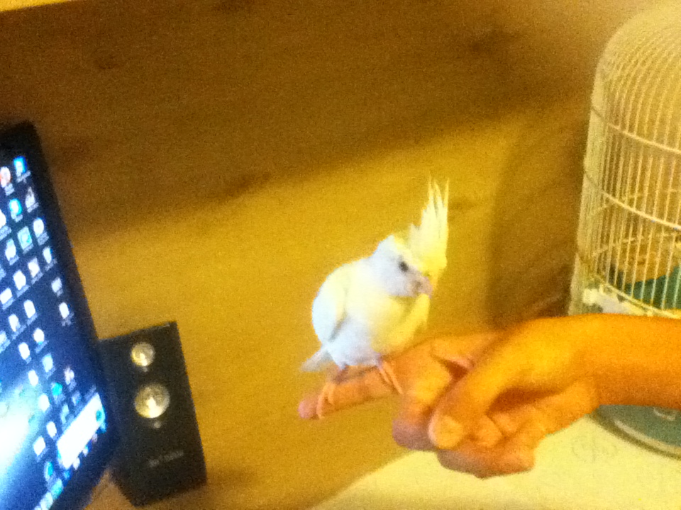 חזרתי מאילת וכמו שאמרתי\חפרתי,חזרתי יחד עם גוזל מוחתם האכלת יד של קוקטייל אלבינו,הקוקטיל בן חודש וחצי לא מזמן נגמל,הוא עבר נסיעה של 3 שעות חזרה לבאר שבע,איך שהגענו הוא ישר קרא לי,חיכה על המקל וביקש שנוציא אותו,איכשהו רק פתחתי את הכלוב והוא כבר היה לי על הראש חח..