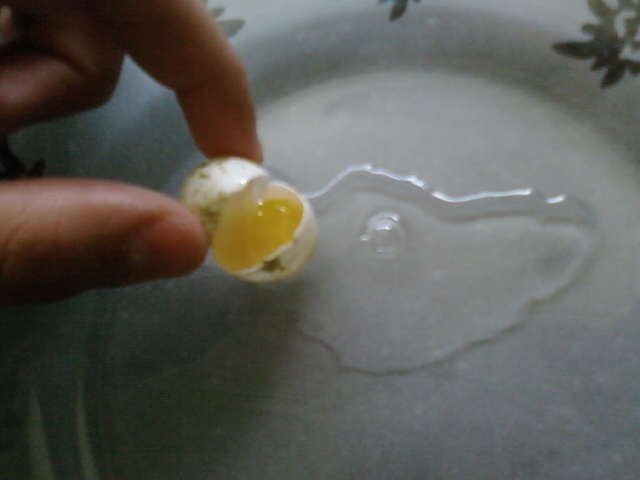 היום פתחתי ביצה אחת גם צילמתי תמונות אני יעלה שאני יוכל היא לא פוריה חלבון וחלמון