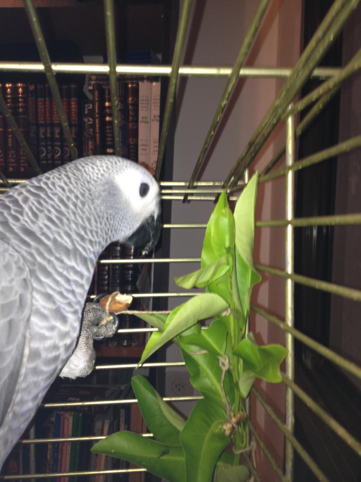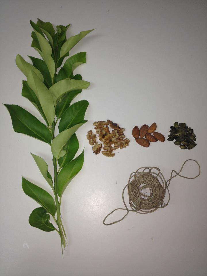 רעיון מעולה. אולי תשדרגי קצת ואת העלים שהנחת עליהם גרעין תגלגלי כשהגרעין בפנים ותקשרי. כך הגרעינים לא יפלו מהעלים כשהתוכי מתחיל לחפש.