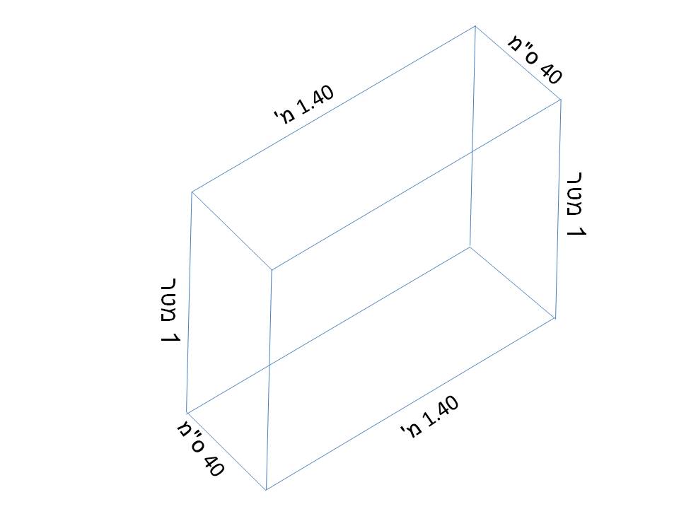 1.40 מ' אורך על 0.4 מ' רוחב/עומק (40 ס"מ) על 1 מ' גובה