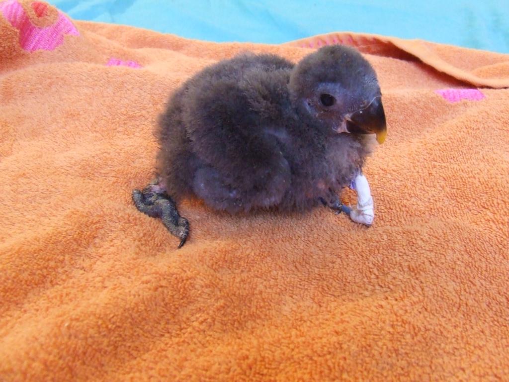 הידיד לקח את התוכי לוטרינר והתברר שהתוכי שבר את ירכו וזקוק לטיפול יומיומי שלו,