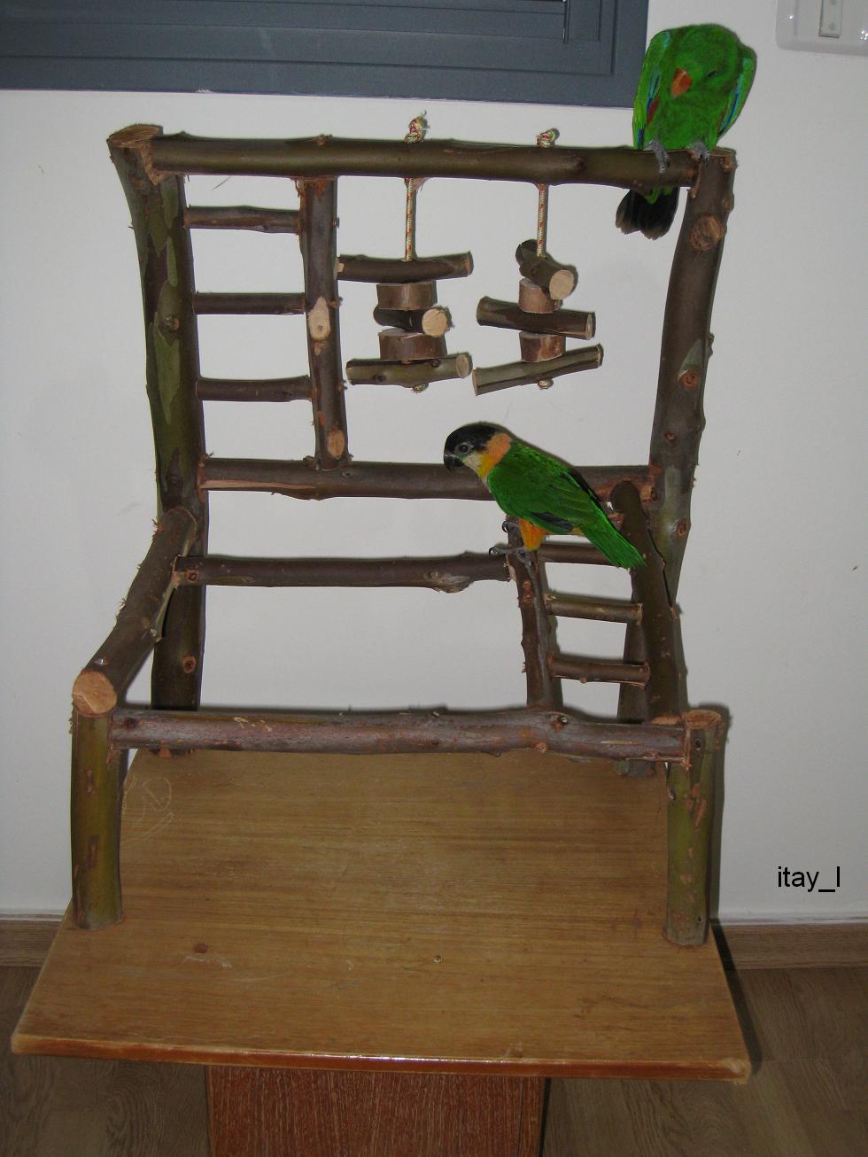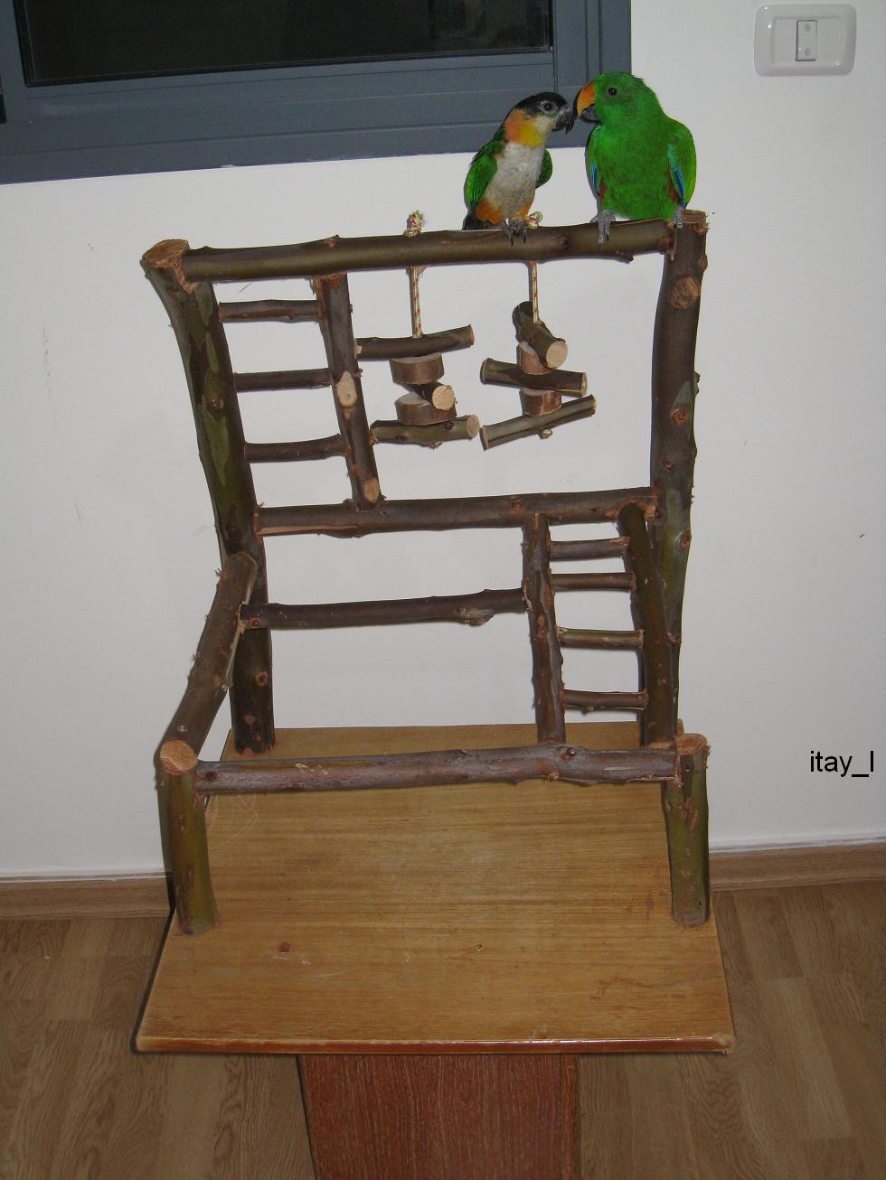 ההכנה נורא פשוטה, הורדתי ענפים של עץ אקליפטוס טרי, חתכתי לפי מידות (זה תלוי בבסיס שאתה בונה עליו) חיברתי עם ברגים ובסוף שטפתי היטב עם מים וסבון ויבשתי בשמש. אותו דבר המשחקים באמצע, עשיתי בכל חתיכה חור עם מקדחה והשחלתי לחבל.