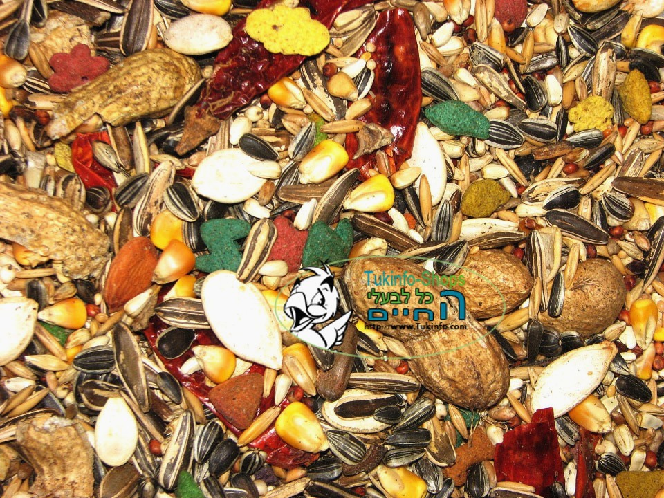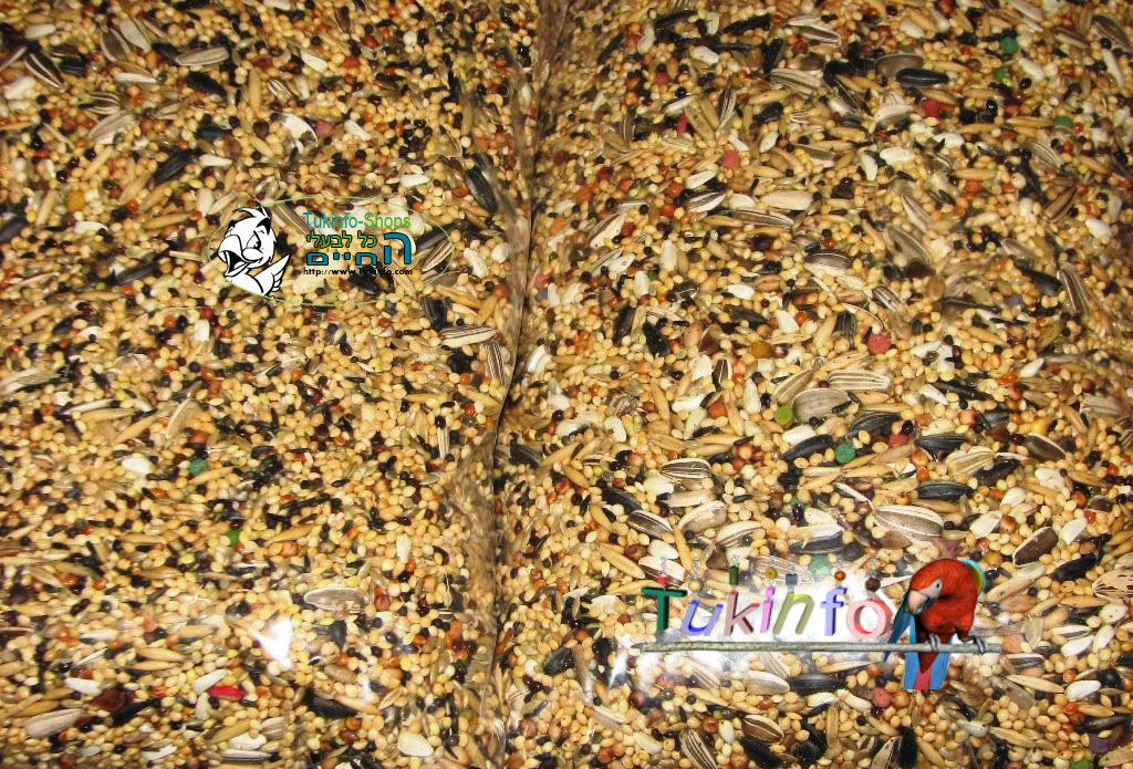 תערובת איכותית לתוכים בינונים וגדולים כגון ג'אקו אקלקטוס קקדו ,תערובת משובחת המכילה :כופתיות ציפורים, חמניה, חמניה קטנה, גרעיני דלעת, דוחןלבן, דורה אדומה, דורהלבנה, חריע, פלפל חריף, שבולת שועל, בוטנים, שעורה,תירס נקי, חיטה, אגוזי פקאן וכוסמת ועוד .