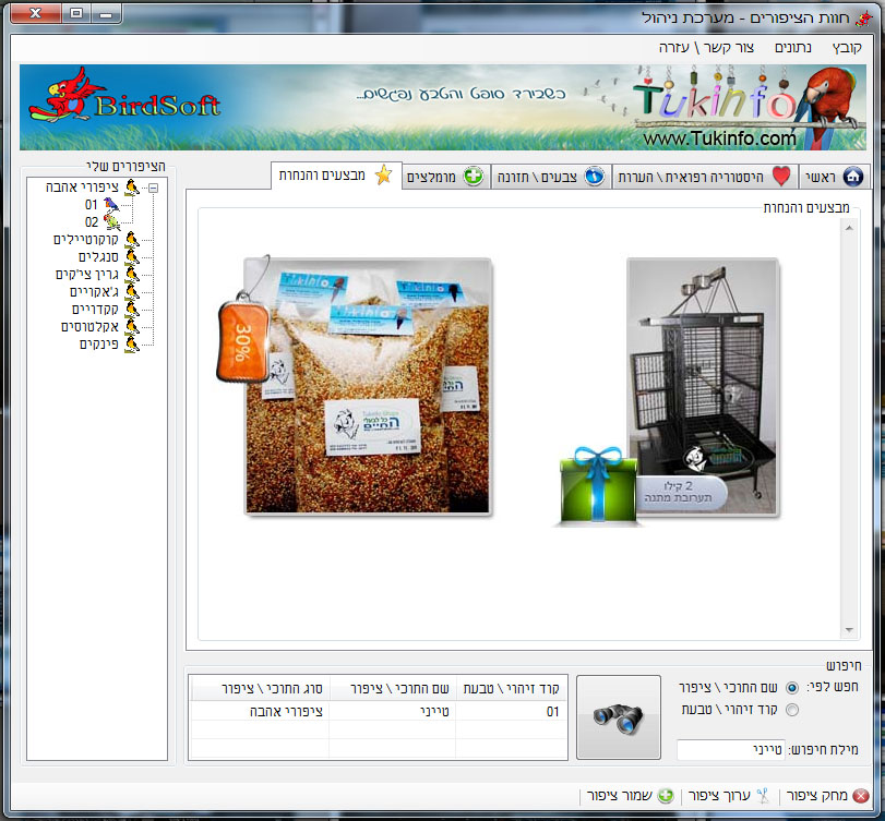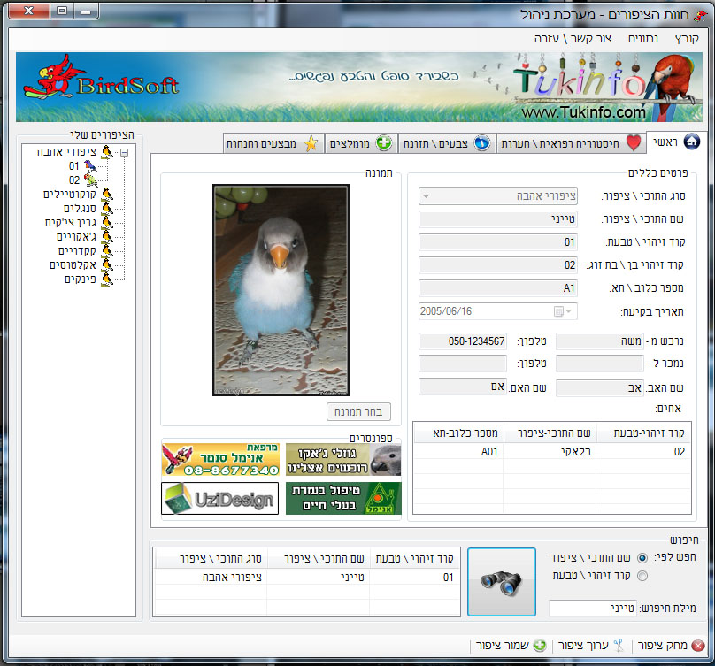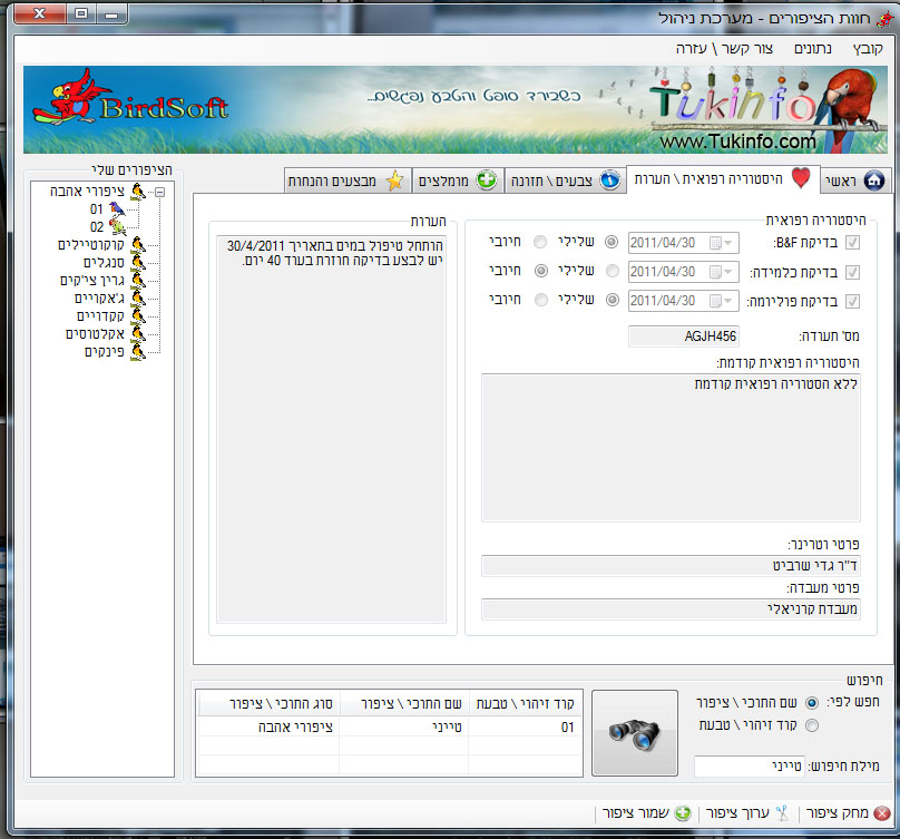 BirdFarm הנה תוכנה בעברית לניהול ומעקב בית הגידול, בין אם מדובר בציפור \ תוכי אחד או חוות גידול.