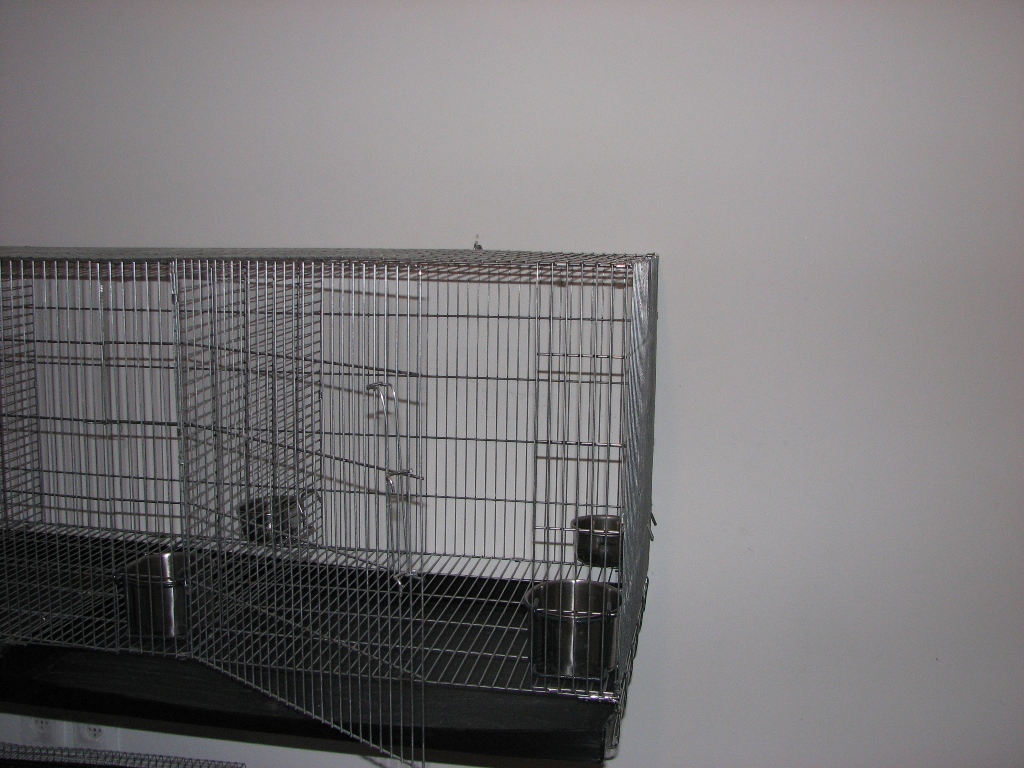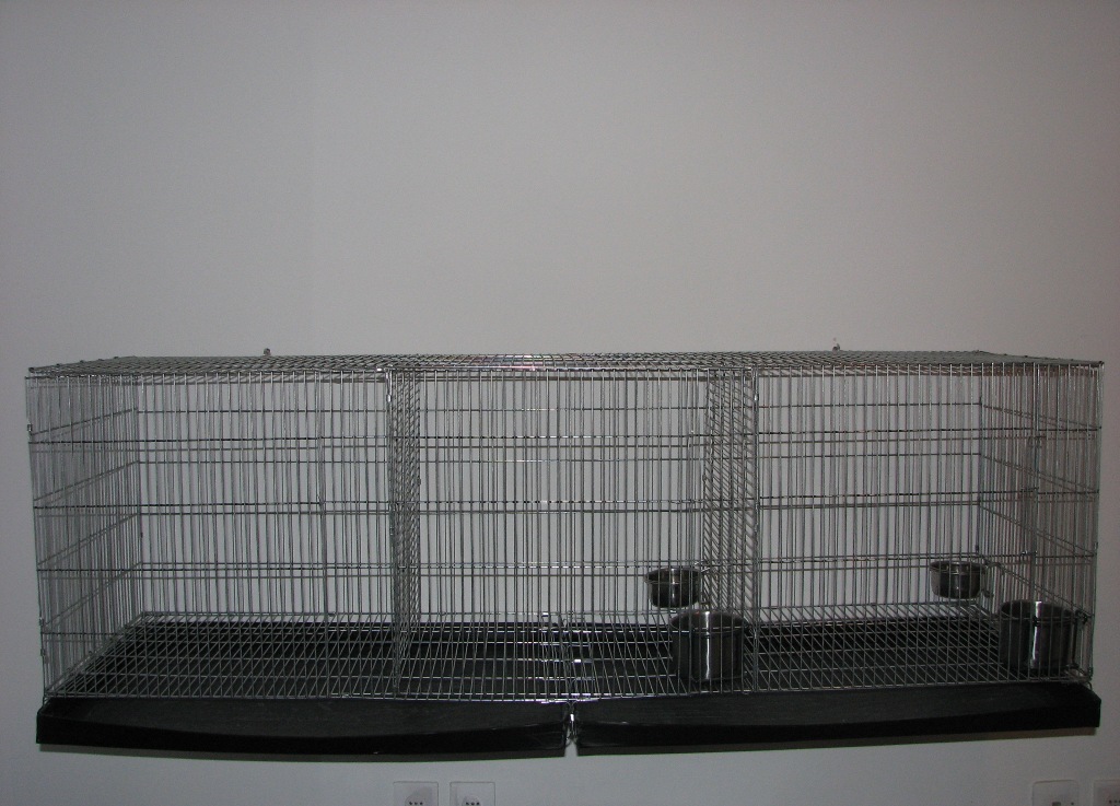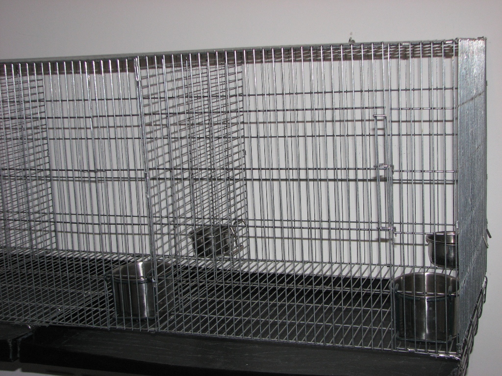 מידות של הכלוב 1.5מ' אורך 46 ס"מ עומק ו 46 ס"מ גובה,התא מחולק ל-3 חלקים כל חלק 50 ס"מ ע"י מחיצות,המחיצות ניתנות להזזה בקלות יחסית