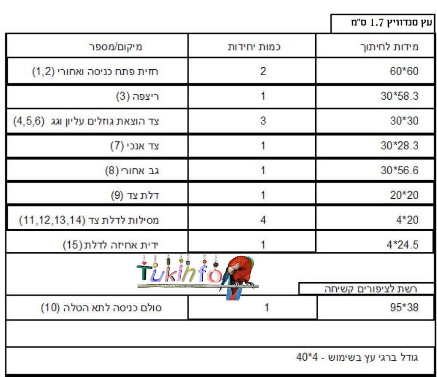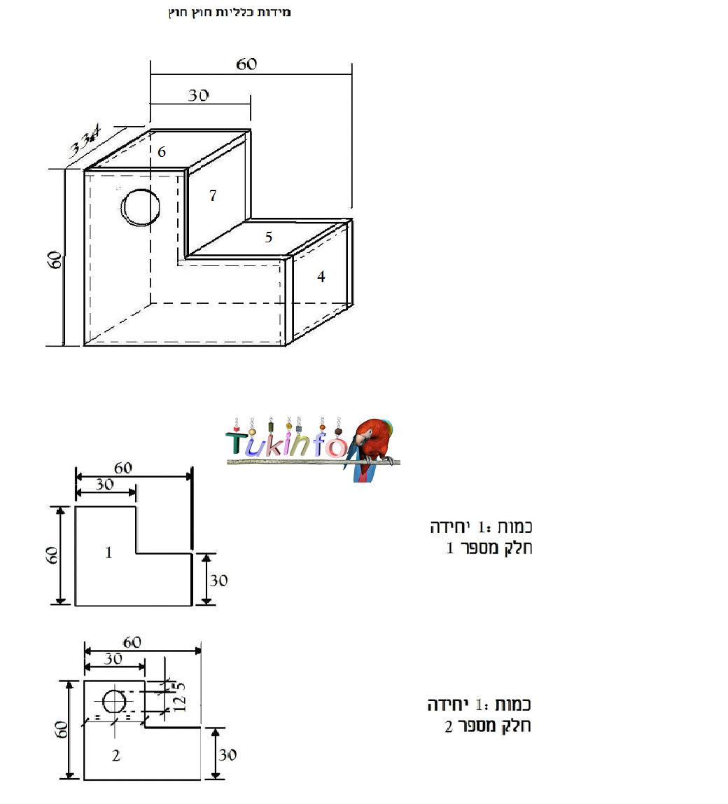 ליצירת תא הטלה במידות 60*30*60 בצורת L נדרש החומר הבא: