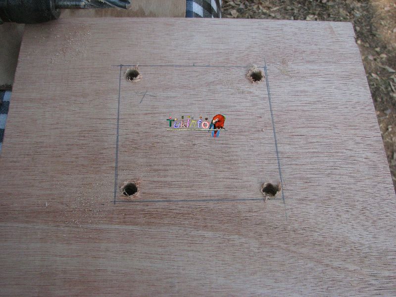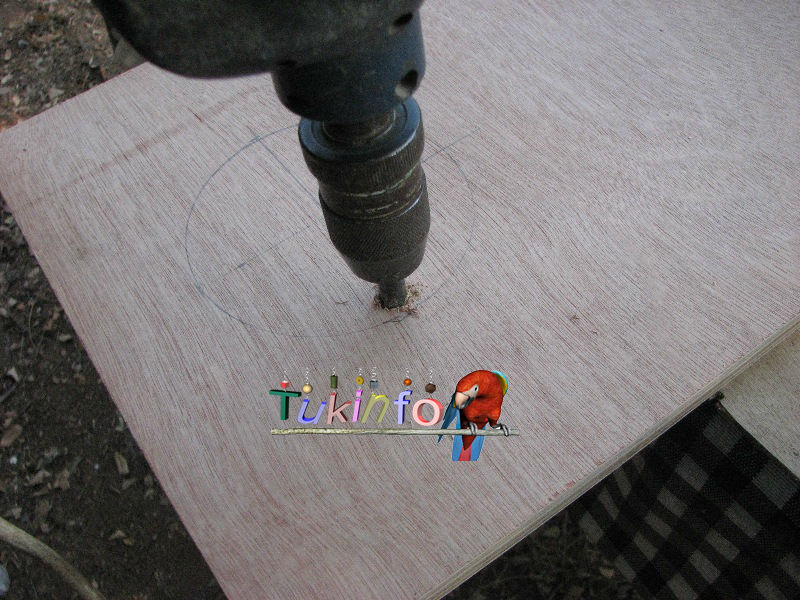 לאחר הסימון נקדח חור בחלקו הפנימי של העיגול. החור ישמש אותנו להכנסת המשור לחיתוך הפתח.